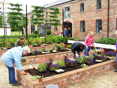 The community gardening project has had a slow start but is really starting to take off now. We must have about 20 or 30 members who are involved in the project at Antrim Castle Gardens. Back in April we designed detailed planting plans and chose mostly perennial plants for the site, however, during May- June there were various delays that meant our group couldn't meet. Then at the end of June we had a phone call that a large number of bedding plants were at our disposal if we wanted them. This was great news as our group had only been involved in digging over and weeding beds thus far.